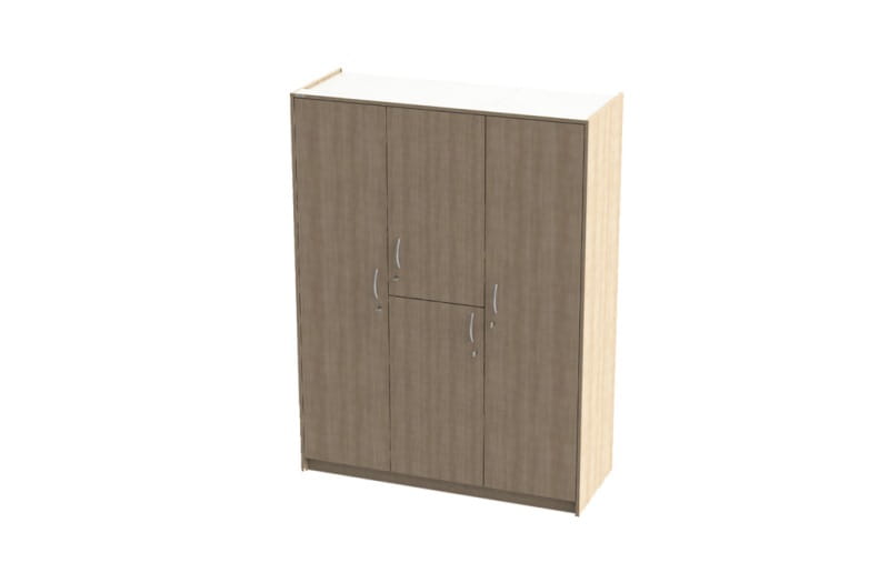 Tweepersoonskast met 4 deuren, kledingroedes en legplanken. Door de 4 deuren met ergonomische 128 mm brede segmentbooggrepen heeft de bewoner gemakkelijke toegang tot alle gedeelten van de kast. De geïntegreerde ingeboorde dempers verlagen het geluidsniveau tijdens het sluiten van de deuren. De kast is leverbaar met 1 of 2 waardevakken, die op wens ook op rolstoelhoogte kunnen worden ingebouwd.
