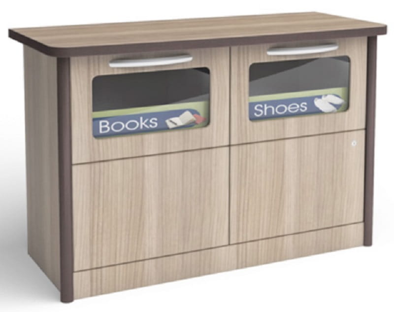 Een kast die speciaal ontwikkeld is voor bewoners met dementie. Door de twee kleuren kan de bewoner de contouren beter herkennen en wordt het verwondingsgevaar geminimaliseerd. Ook de afgeronde randen dragen bij tot de veiligheid. Dankzij de doorzichtige deuren is in een oogopslag de kastinhoud te herkennen. Aan de binnenzijde is er veel opbergruimte voor kleding en persoonlijke eigendommen.
