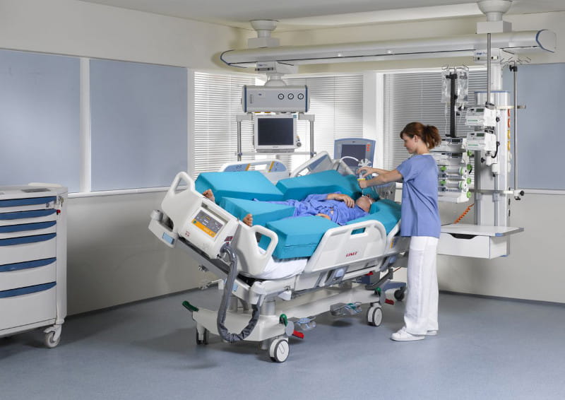 Bilaterale draaiing vereenvoudigt het regelmatig wisselen van bed voor de patiënt en biedt een effectieve drukontlasting. Het Ergoframe®-systeem verhoogt de ruimte in het bekkengebied om zodoende de indrukking van het weefsel te verminderen.