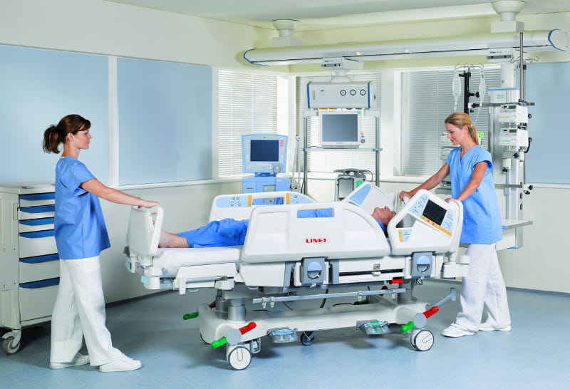 Om het vallen als gevolg van een ongeremd bed te voorkomen, activeert het unieke i-brake-systeem de remmen automatisch. Het multizone-uitstapalarm laat zien wanneer een patiënt uit bed stapt.