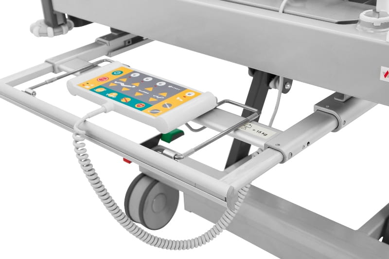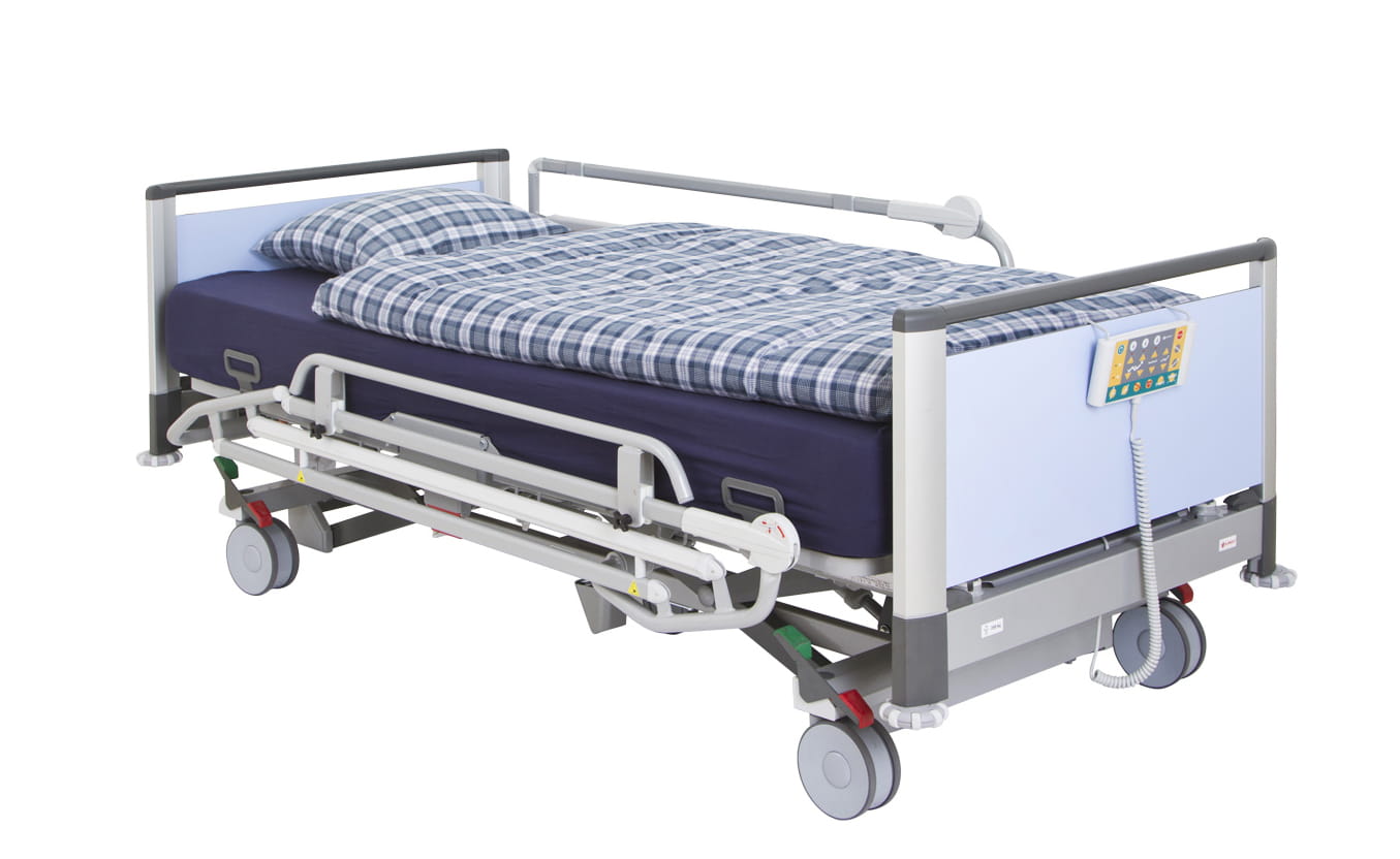 image 3-b, speciaal ontworpen voor obese patiënten die de comfortabele, veilige en praktische kant van het bed zeer waarderen. De belangrijkste prioriteit van dit bed is een hoge veilige werklast van 320 kg. Door zijn flexibiliteit kan het bed worden gebruikt voor uiteenlopende ziekenhuisafdelingen.