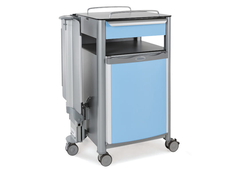 Dankzij de gemakkelijke en gereedschapsloze zijdeverwisseling (links/rechts) kan het eetblad individueel aan de behoeften van de patiënt en aan de ruimtelijke omstandigheden worden aangepast.